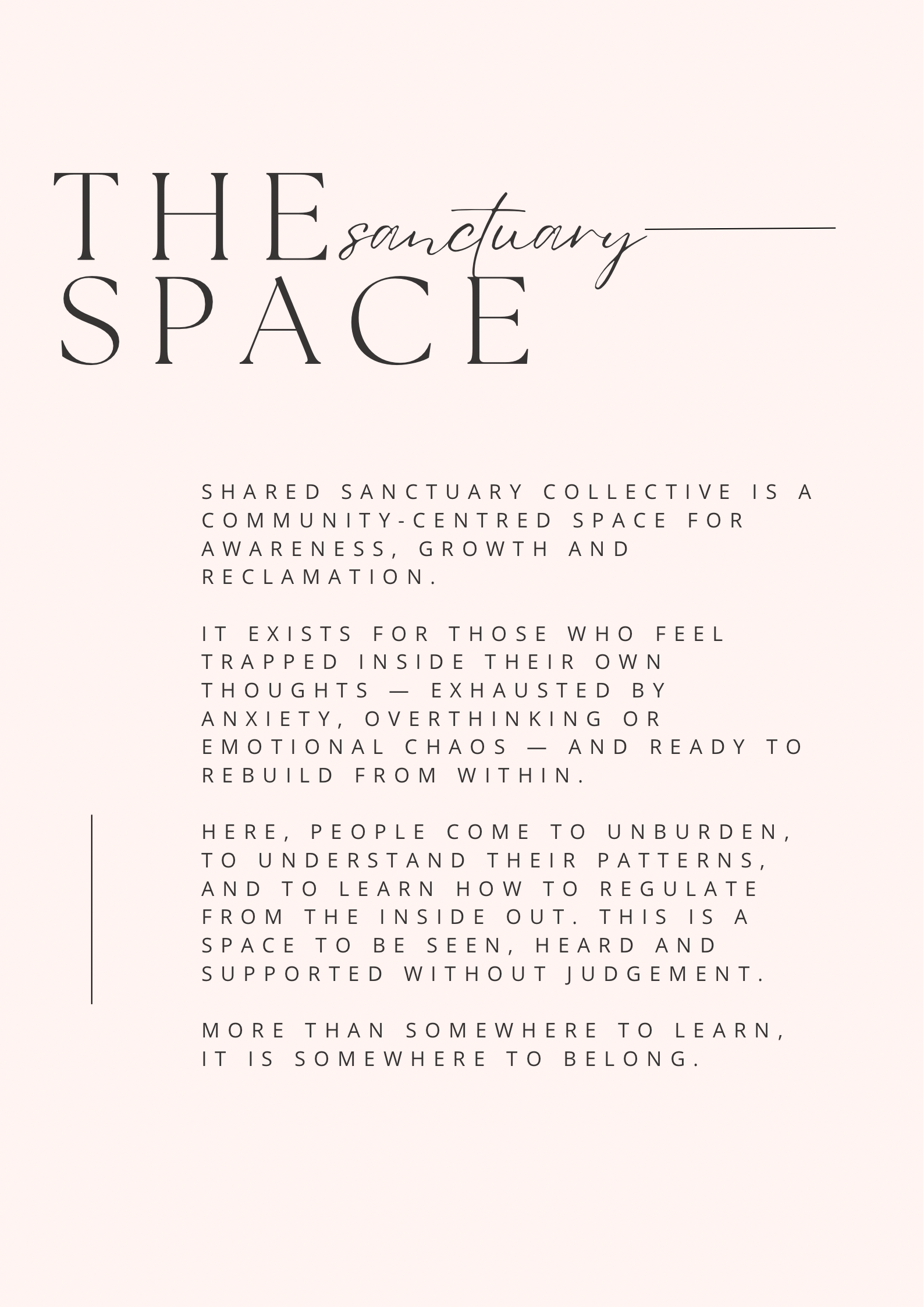Shared Sanctuary exists to help give you practical emotional reset and thought pattern coaching so you understand what is holding you back and gently dismantle and reframe thought conditioning and emotional looping. Providing you with the independence to regain control over the day to day experiences you live.
