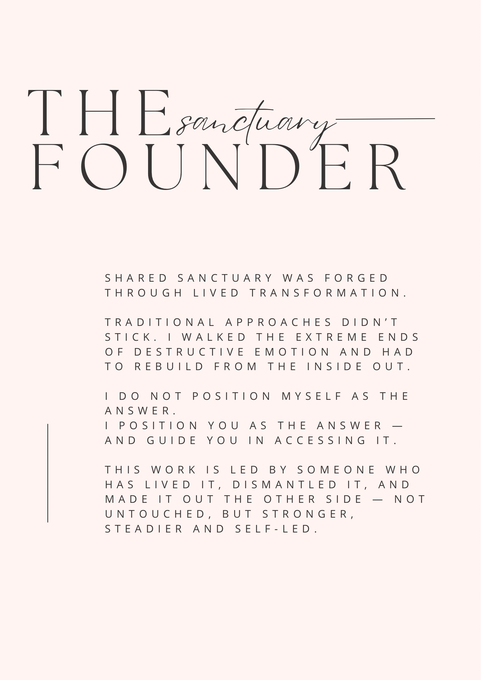 Shared Sanctuary was created from lived experience, not theory, and from years spent understanding that what once felt impossible to escape is often simply a pattern waiting to be recognised and reorganised.